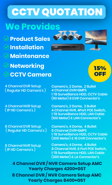 We have a team for CCTV Setup and installation, as well as we worked in CCTV MAINTENANCE services.